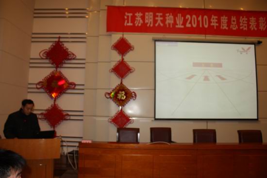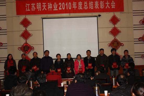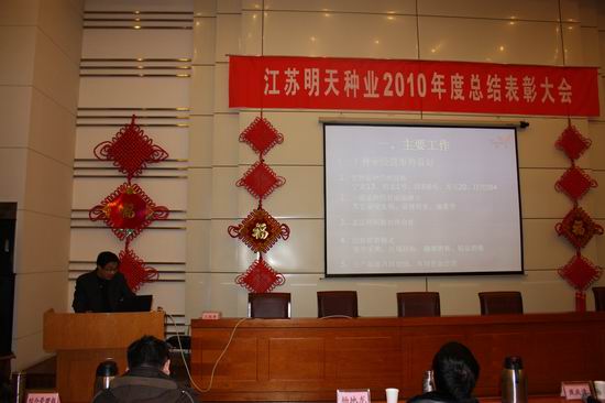2011年1月23日,江蘇明天種業在院101會議室舉行了2010度總結表彰大會,公司全體職工及淮安明天、睢寧基地等相關單位的經理層參加了本次活動。