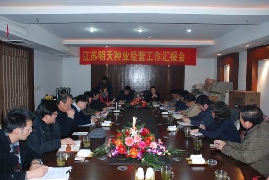 2011年1月2日,江蘇天坤集團領導召集明天種業高管及部分部門負責人在丹陽皇冠大酒店舉行2010年度工作匯報會,會上,尹建勛總經理等公司領導全面匯報了2011年工作,客觀分析了面臨的形勢、存在的問題,提出了2011年及“十二五”期間的工作設想。江蘇天坤集團董事長凌云、總裁張利民等領導認真聽取了有關匯報,與與會人員分別進行了深入座談和交流,凌云董事長對明天種業下一步的工作目標、計劃、措施等提出了明確要求,并作出重要指示。