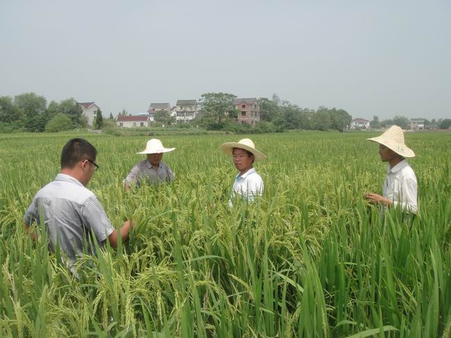 8月20日上午,明天種業(yè)研究院院長王才林在明天種業(yè)副總經(jīng)理楊地龍、明天種業(yè)研究院副院長王進生等陪同下,冒著高溫到明天種業(yè)江寧水稻育種基地考察。