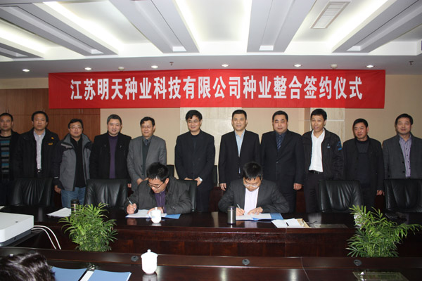 江蘇省農科院院長,明天種業董事長嚴少華指出,江蔬種苗與明天種業的資源整合,是明天種業實施業務拓展、做大做強戰略規劃的重要舉措,也是符合現代種業發展的趨勢和要求。明天種業要充分發揮院科技服務系統的技術優勢,做好市場服務,輻射農戶農民,要以整合儀式為契機,爭取在2013年取得新的業績。