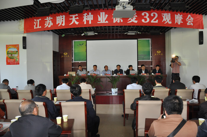 省作栽站王龍俊副站長認為該品種不僅矮桿、強筋、高產,并且還具備株型好、穗型好,耐遲播三大特點表示了肯定,并且指出目前麥種市場急需能夠適應未來小麥生產上標準化、產業化的需求的大品種。明天種業積累了在紅麥市場上寧麥13的成功推廣經驗,也應完全有能力將徐麥32做成未來白麥市場中的大品種。他指出全省作栽系統和種子企業應聯手推廣應用新品種新技術,確保良種與良法配套到位,為農業生產,農民增收做出積極貢獻,同時要求種業企業要創新思維拓展思路,可以聯合糧食加工企業走出訂單農業生產第一步。