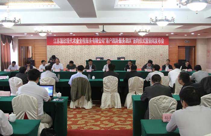 9月25日,江蘇源欣現代農業全程服務有限公司“落戶泗洪?服務泗洪”簽約儀式暨新聞發布會在泗洪縣順利舉行。江蘇省農業科學院院長嚴少華,泗洪縣委副書記、縣長徐勤忠,宿遷市委副秘書長朱方林,江蘇源欣現代農業負責人蔣海方等100多人出席發布會。