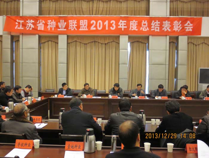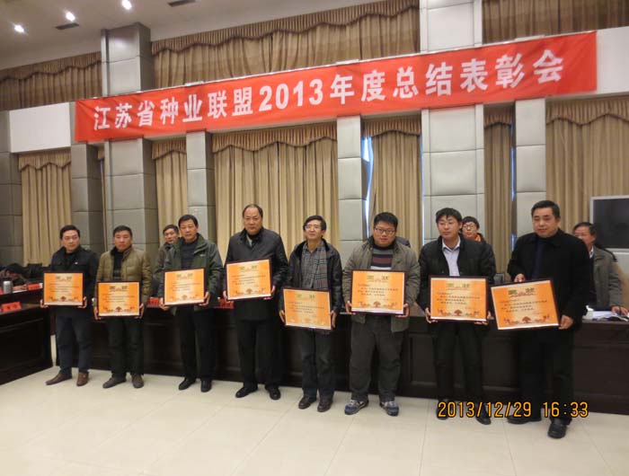 2013年12月29日,江蘇省種業聯盟2013年度總結表彰會在江蘇省農科院召開。省科技廳農村科技處處長陳洪強,省農科院副院長鄭建初、省農科院科研處處長黃俊、省農科院知識產權處處長艾玉春,省種業協會李燕,及聯盟各成員單位主要負責人出席會議。