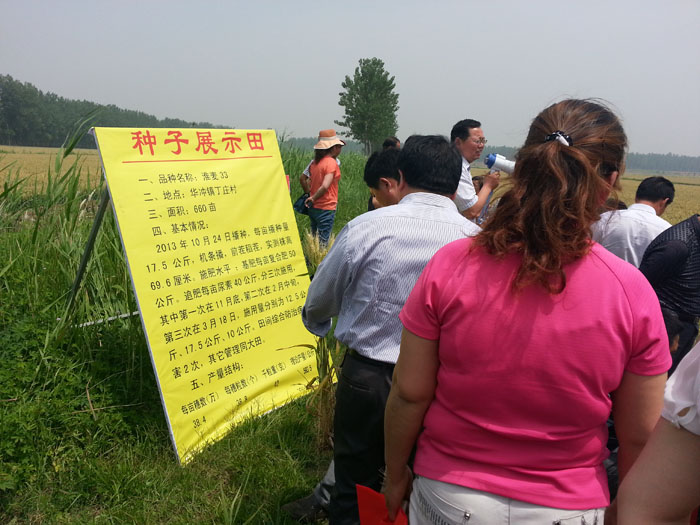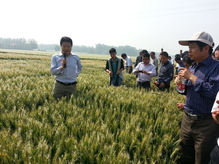 5月15日-28日,江蘇明天種業科技有限公司蘇北區域各市縣代理商相繼召開了淮麥33、徐麥32兩個新品種的觀摩會,由于該兩個品種在各地農委展示田和大面積種植中表現都相當出色,受到鄉鎮經銷商和種田大戶的一致看好:紛紛表現出強烈的推廣欲望,向代理商和公司訂購該兩個品種的秋播種子數量。