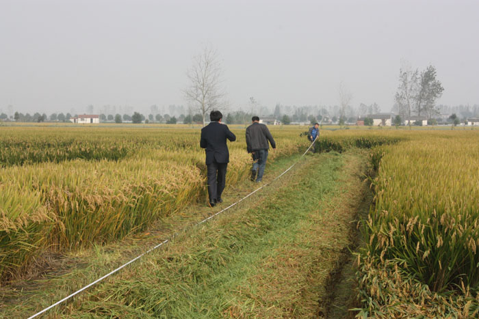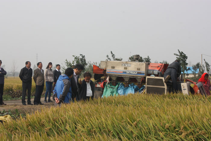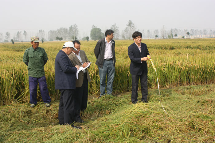 2014年11月2日,受農(nóng)業(yè)部科教司委托,江蘇省農(nóng)業(yè)委員會組織水稻育種、栽培、推廣等領(lǐng)域7位專家,組成測產(chǎn)專家組,對我公司水稻新品種南粳52進(jìn)行實割測產(chǎn)驗收。驗收地點位于興化市釣魚鎮(zhèn)釣魚村,驗收面積為110.6畝。