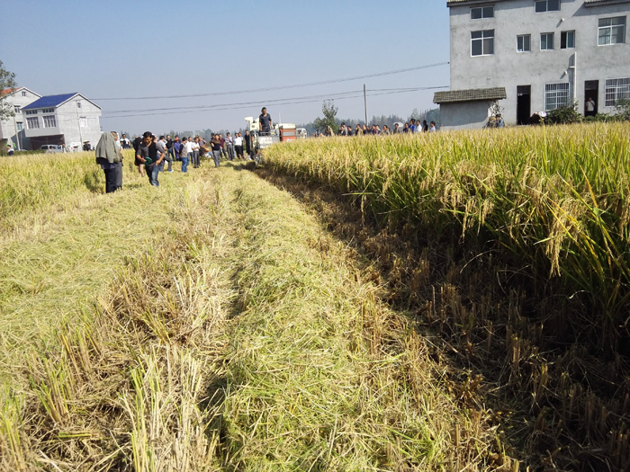 2015年10月12日江蘇明天種業深兩優862直播田收割測產會在湖北省潛江市順利召開。此次明天種業攜國審新品種“深兩優862”再次歸來,強勢進入江漢平原。深兩優862在江漢平原既能移栽更能直播,此前移栽田的產量和出色的田間表現已經得到了代理商的一致認可,而這次直播田的表現更讓大家對深兩優862有了更深刻的認識。深兩優862矮桿、分蘗強、穗數多、抗病性好以及葉青籽黃的好熟相得到了在場人員的一致認可。