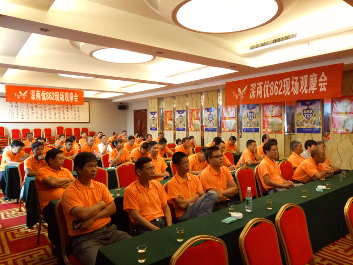 之后,丁經(jīng)理深詳細(xì)介紹了深兩優(yōu)862的特征特性,并向經(jīng)銷商分享了深兩優(yōu)862在岳陽、常德、衡陽、株洲、湘潭等多個地區(qū)的田間表現(xiàn),同時公布了深兩優(yōu)862在湖南的基本銷售政策,最后展示了公司后續(xù)品種--和兩優(yōu)713。為了讓經(jīng)銷商深入了解深兩優(yōu)862,我們邀請了示范片負(fù)責(zé)人,高級農(nóng)藝師肖利民為與會人員詳細(xì)講解了深兩優(yōu)862的種植方案。公司總經(jīng)理助理蔣銀濤向與會經(jīng)銷商就雜交水稻部發(fā)展歷程、育種家育種方向、公司戰(zhàn)略布局、種業(yè)營銷現(xiàn)狀等方面進(jìn)行了闡述,并表示我們將與和我們一起前行的經(jīng)銷商共創(chuàng)輝煌。會議最后經(jīng)銷商代表,洞口縣植物保健醫(yī)院老總劉會東表示明年深兩優(yōu)862一定會大賣!