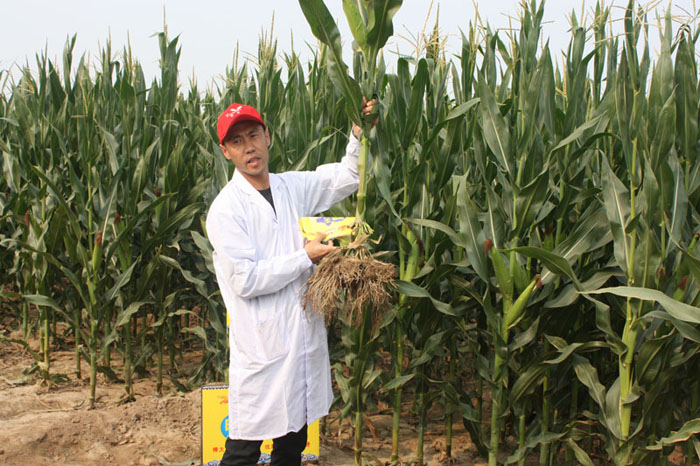 5、大根系。明天695有龐大的根系(根系下扎深,3層氣生根,條數多,功能強),一方面增強抗倒性,特別是抗根倒。同時對水、肥高效吸收利用。