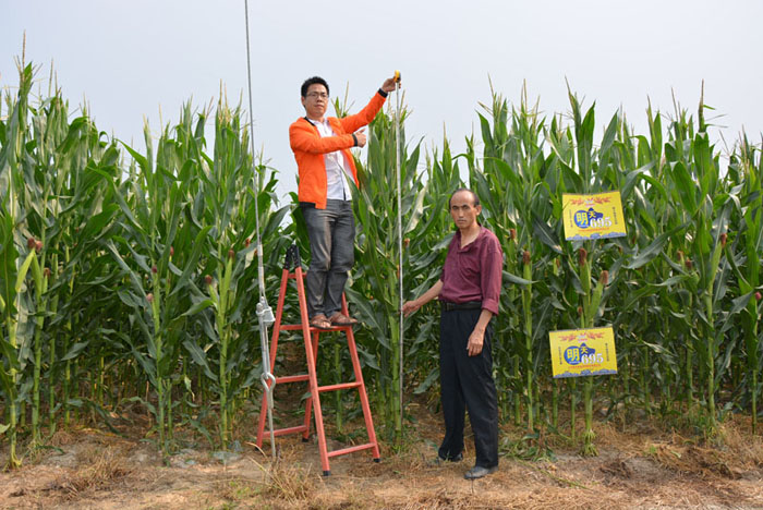 該品種全生育期105天,苗期葉色濃綠,長勢健壯。成株株型緊湊,植株清秀,透光性好。葉片數21片,分布均勻。株高255-275cm,穗位90cm,比例協調適中,穗層整齊一致。雄穗主軸長、分支8-12個,花粉量大。果穗大特均勻,筒型穗,穗長21cm,粗5.3cm,結實性好,禿尖小,穗行數14-16行,行粒數40粒,出籽率90.2%,千粒重390克,籽粒馬齒型,商品性好,穗軸粉紅色。秸桿較硬,氣生根發達,抗倒性強,活桿成熟。
