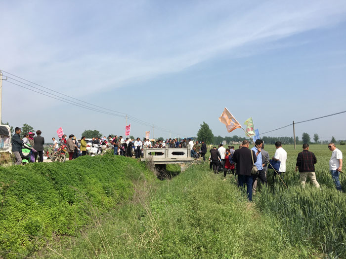 泗縣站:泗縣的鄉鎮客戶代表正在認真觀摩、仔細察看淮麥33的田間表現。