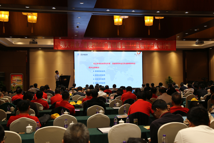 金秋十月,秋風(fēng)送爽,種植“南粳3908”的田間稻香四溢,沉甸甸的稻穗隨風(fēng)起伏,一片豐收在望的喜人景象。10月15~16日,我公司好味稻米新品種“南粳3908”營銷峰會暨優(yōu)質(zhì)稻米產(chǎn)業(yè)研討會在丹陽召開。會議邀請了中國種子協(xié)會副會長鄧光聯(lián)、江蘇省農(nóng)科院副院長劉賢金、江蘇種業(yè)協(xié)會會長張堅勇、江蘇省農(nóng)技推廣站站長管永祥、江蘇省農(nóng)技推廣站副站長楊洪建、江蘇省種子站副站長陳國斌、丹陽市副市長王強、江蘇省著名水稻育種家王才林研究員等領(lǐng)導(dǎo)專家出席。來自江蘇、安徽各地的種子經(jīng)銷商、種植大戶和稻米加工企業(yè)代表等200余人濟濟一堂,甚是熱鬧。